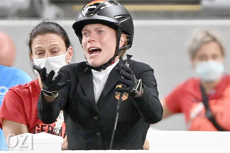 Kim raisner was trying to assist german athlete annika schleu as she battled to control saint boy ahead of her show jumping round in the women's event on friday.